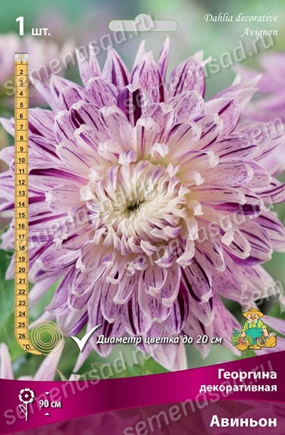 Георгина декоративная Авиньон – прекрасный, эффектный многолетник с крупными соцветиями, достигающими до 20 см в диаметре. Высота растения около 90 см. Бутоны привлекают внимание нежностью оттенков: белые лепестки украшены элегантными сиреневыми мазками, будто искусно нанесёнными рукой талантливого художника. Сорт Авиньон универсален в использовании. Он одинаково хорошо будет смотреться как в составе групповых посадок, так и в качестве солитера, выделяясь на фоне остальных растений. Его изысканная красота позволяет создавать прекрасные букеты, привнося в композиции особую элегантность и лёгкость.