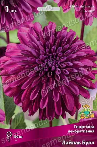 Георгина декоративная Лайлак Булл — прекрасный цветок, который пленит своим глубоким оттенком, словно роскошная бархатная ткань, переливающаяся яркими насыщенными красками. Его лепестки окрашены в изысканный лилово-пурпурный цвет, придающий особую выразительность и утонченность всему растению. Этот оттенок завораживает своей глубиной и богатством, вызывая ассоциации с драгоценностью, бережно хранящейся среди зелени сада. Лепестки широкие, плотные, слегка подкрученные — создают ощущение объёма в букете. Цветы диаметром около 11 см. Растение высотой до 100 см. Период цветения: июль-сентябрь. Использование: выращивание в открытом грунте, на срезку.