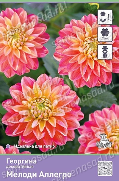 Георгина декоративная Мелоди Аллегро — отличный срезочный сорт! Цветок диаметром 12-15 см. Куст около 60 см высотой, подходит для выращивания в контейнере. Период цветения: Июль-Сентябрь. Цветок поражает воображение необычайно красивым плавным переходом оттенков: начиная с золотисто-жёлтых центральных лепестков, постепенно перетекающих в мягкий кораллово-розовый тон, и завершаются нежнейшим сиренево-розовым цветом на концах нижних лепестков. Эта очаровательная палитра создаёт иллюзию градации солнечного света, проникающего сквозь прозрачную дымку утреннего тумана. Куст обильно покрыт такими волшебными цветами, делая его идеальным выбором для украшения садов и террас.