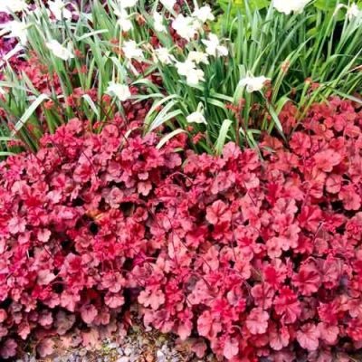 Гейхера гибридная Черри Кола. Низкорослое маленькое растение имеет высоту в 20 см, а ширина кроны составляет около 30 см. Развивается растение очень хорошо, побеги крепкие и неломкие.