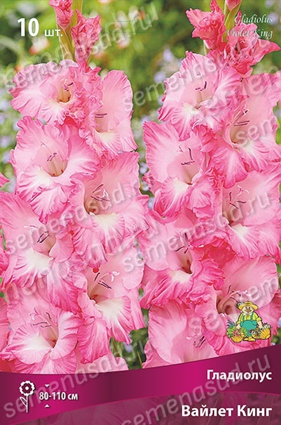 Гладиолус Вайлет Кинг - крупные розово-фуксиевые цветки, привлекающие внимание своей яркой окраской и элегантной формой. Нижний лепесток выделяется белым пятном, что добавляет выразительности каждому бутону. Растения высотой 80-110 см. Длина соцветия около 50 см. Размер цветка: 12 – 15 см. Период цветения: август – сентябрь. Аромат слабый, нежный. Яркие соцветия сорта прекрасно впишутся в цветочные композиции в сочетании с хризантемами, астрами или лилейниками. Использование в ландшафте: альпинарий, цветник, групповые посадки, миксбордер. Элегантный и величественный гладиолус Вайлет Кинг станет фаворитом вашего сада на исходе лета!