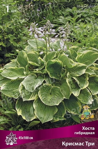 Хоста гибридная Крисмас Три — величественная, широкорастущая красавица, которая в период цветения напоминает пушистую новогоднюю ель, припорошенную снегом. Её мощный куст достигает 40–50 см в высоту и разрастается в ширину до внушительных 90–100 см, становясь доминантой любого цветника. Листья этого сорта — настоящее произведение искусства. Появляясь весной в мягких оливково-зеленых тонах с лёгким голубоватым налётом, к середине сезона они наливаются глубоким тёмно-зелёным цветом. Их поверхность матовая, благородная, а по краю проходит узкая, неравномерная кремовая кайма, которая со временем светлеет до белоснежной, словно первый иней. В зрелом возрасте листья становятся сильно жатыми, скульптурными, с едва заметной волной по краю, а их форма может варьироваться от широкоовальной до почти круглой, неизменно сохраняя изящный острый кончик и сердцевидное основание. Лист крупный, размером около 21х16 см, держится на прочном тёмно-зелёном черешке. Иногда на листьях проступают живописные серовато-зелёные полосы, расходящиеся к центральной жилке, что добавляет облику растения дополнительную глубину. В июле–августе над этой роскошной листвой поднимаются прямые, облиственные серо-зелёные цветоносы с нежными воронковидными цветками бледно-лавандового оттенка. Именно в эту пору куст, усыпанный множеством светлых цветов на фоне пёстрой зелени, обретает то самое сходство с нарядной новогодней ёлкой, застывшей в ожидании праздника. Крисмас Три станет идеальным выбором для создания акцентов в ландшафте, даря саду атмосферу торжественности и природного совершенства.