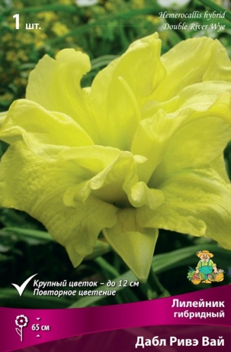 Лилейник гибридный Дабл Ривэ Вай — среднерослое многолетнее травянистое растение высотой 60-70 см, иногда до 80 см. Цветов на цветоносе обычно 7-10 шт, может достигать 20 шт. Цветок махровый, крупный, диаметром около 11-13 см. Окраска бутона желтая однотонная, горло зеленое. Аромат приятный, средней интенсивности. Цветение продолжительное и обильное, с июля по август. Лилейник неприхотлив в уходе и обладает высокой зимостойкостью. Цветок подходит для групповых и одиночных посадок, идеален на срезку.