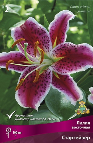 Лилия восточная Старгейзер аристократы в мире лилий! Цветки душистые, очень крупные, просто огромные, экзотических окрасок: бело-розовые, белые, малиновые, розовые с крапинками и полосками по центру волнистых лепестков или без них. На зиму требуют укрытия. Цветут в июле-сентябре.