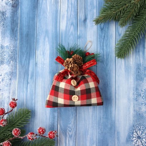 Елочная игрушка Новогодний мешочек в клетку 12,5*8,5см красный