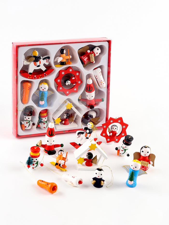 Елочные игрушки Подарочный набор 18*17*2,8см деревяный микс