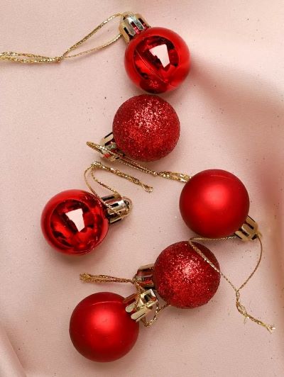 Елочные игрушки Шар d3см 6шт пластик красный