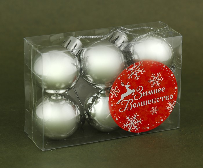 Елочные игрушки Шар Глянец d3см 6шт пластик серебряный