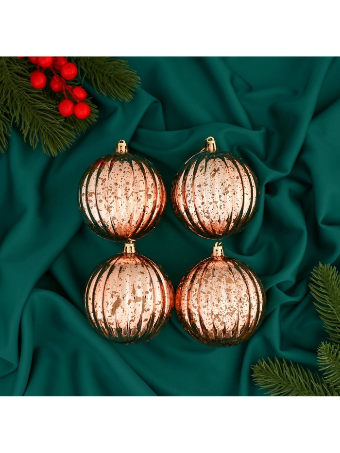 Елочные игрушки Шар Винтаж d8см 4шт пластик золотой