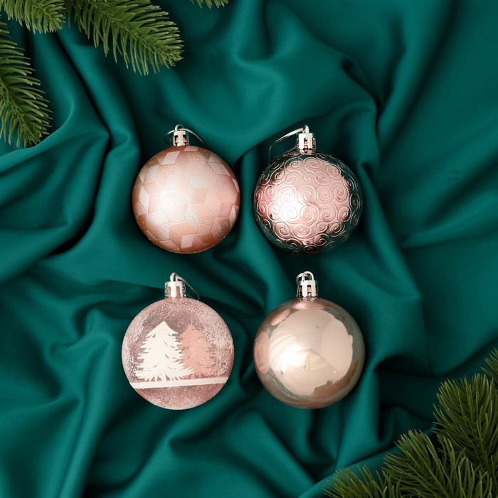 Елочные игрушки Шар Зимняя сказка d5,5см 4шт пластик розовый