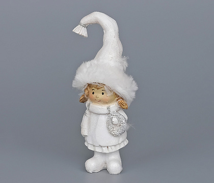 Фигурка декоративная девочка в пушистой шапочке 13см белый