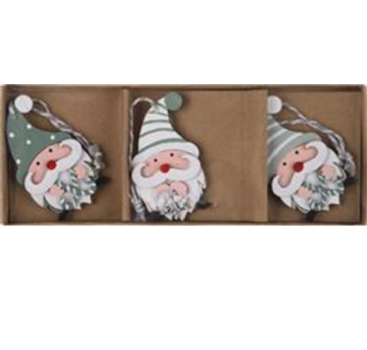 Набор декоративных подвесок "Санты" 7,5см, 3шт, зеленый