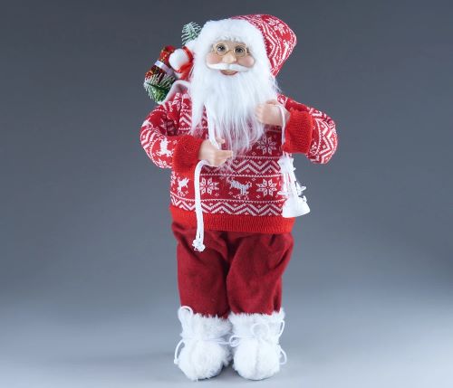 Санта Клаус с подарками и фонариком h45см красный-белый