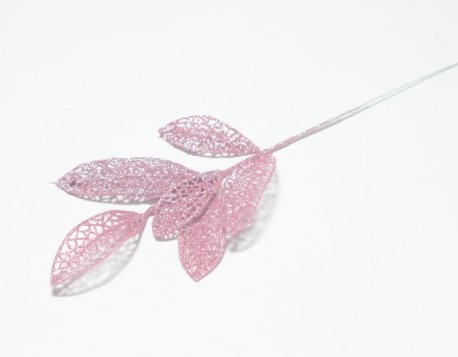Лист Лавр, искусственный, h37см с глиттером, розовый