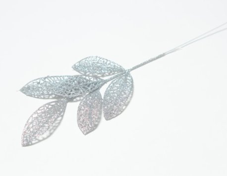 Лист Лавр, искусственный, h37см с глиттером, серебряный