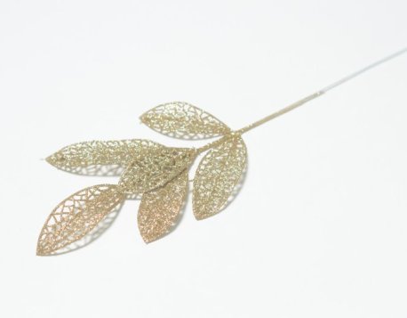 Лист Лавр, искусственный, h37см с глиттером, золотой