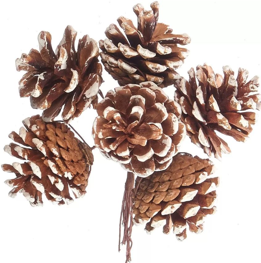 Шишки на проволоке в связке 6шт h14см заснеженный