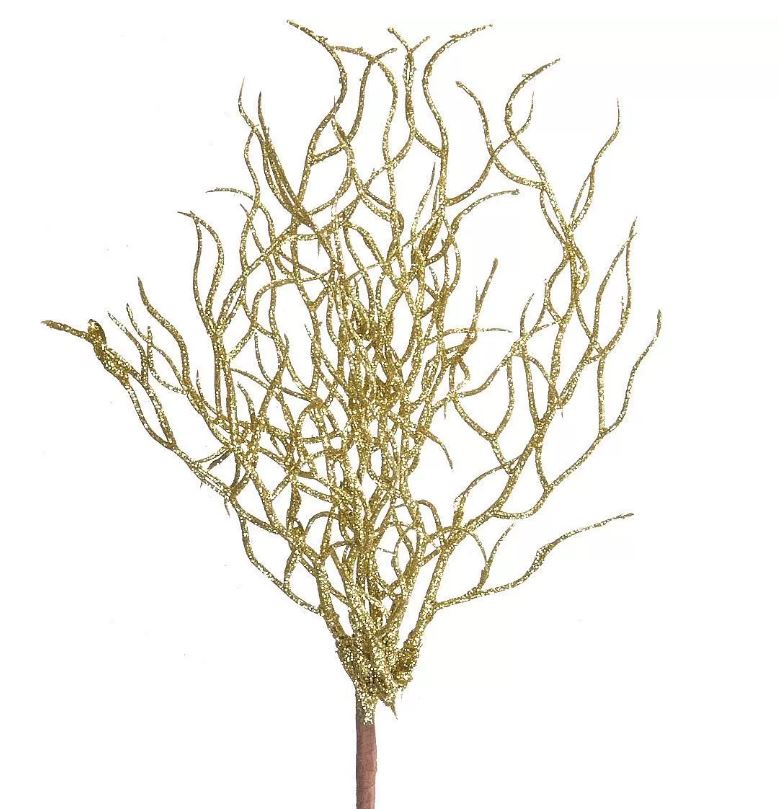 Ветка декоративная с глиттером, h25см, золотой