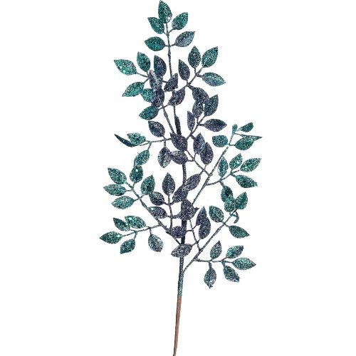 Ветка декоративная с глиттером h65см изумрудный с синим