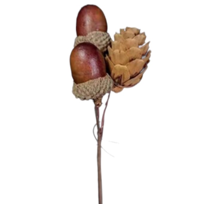 Ветка декоративная с желудями и шишкой, h13см, натуральный