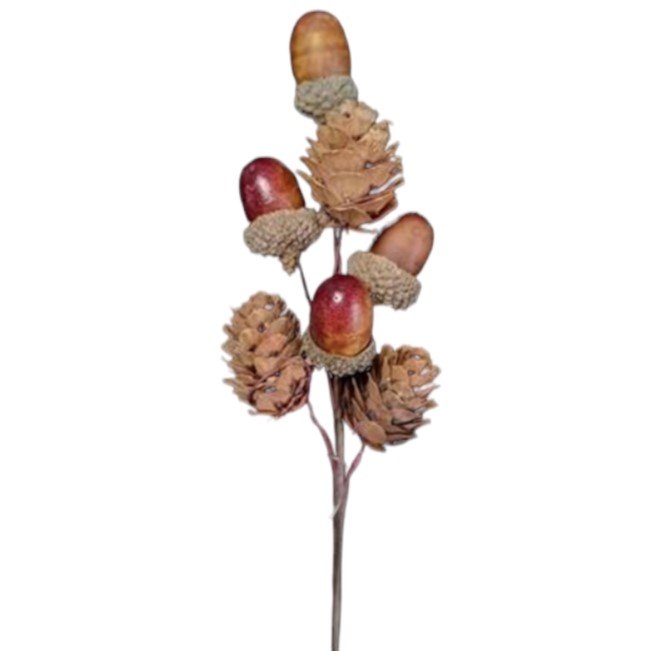 Ветка декоративная с желудями и шишкой, h20см, натуральный