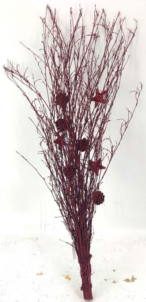 Ветка декоративная в связке с шишками h90см красный