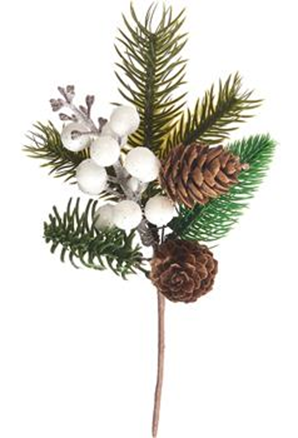 Ветка искусственная еловая с ягодами и шишками h22см зеленый
