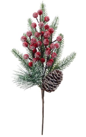 Ветка искусственная еловая с ягодами и шишкой h40см