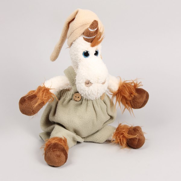 Мягкая игрушка Лошадка Январь в комбинезоне хаки h18*27см