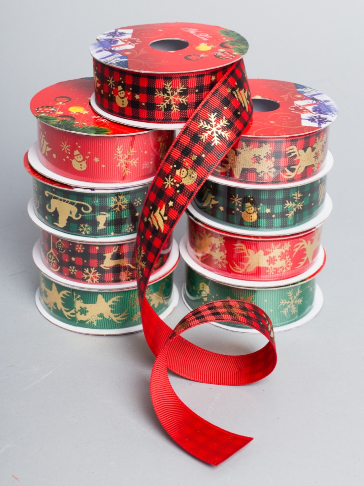 Лента декоративная НГ 2,5см*3ярд Тиснение микс