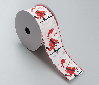 Лента декоративная НГ 6,3см*10ярд Санта Клаус белы красный