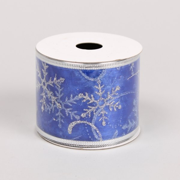 Лента декоративная НГ 6,3см*10ярд со звездочками синий