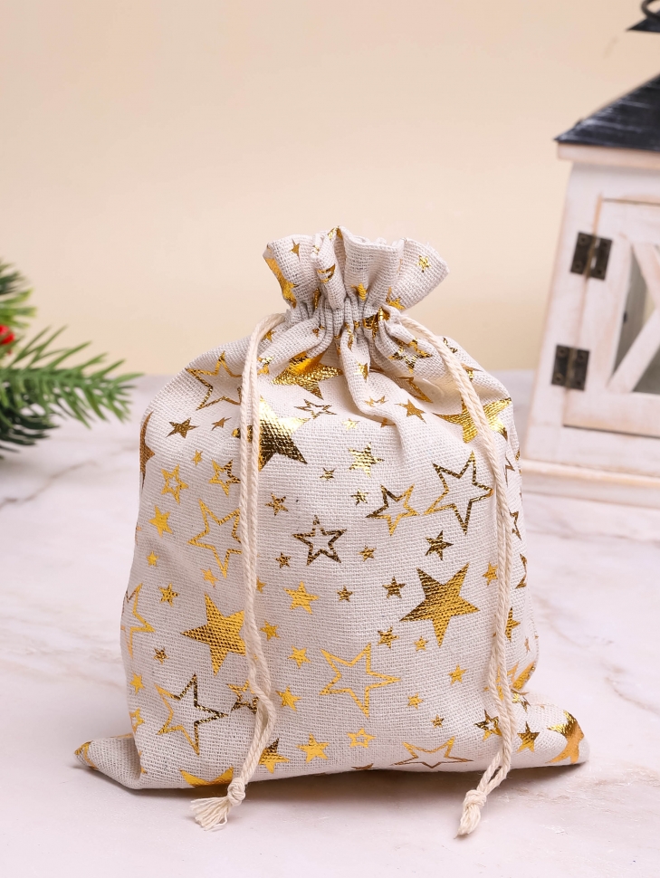 Мешок подарочный НГ холщовый 14*20см Звезды золотые серый