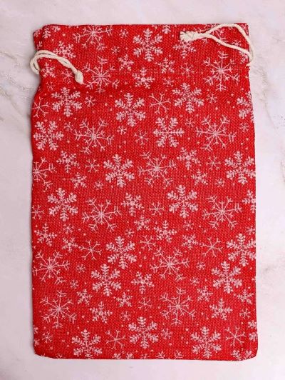 Мешок подарочный НГ Снежинки 20*30см белый красный