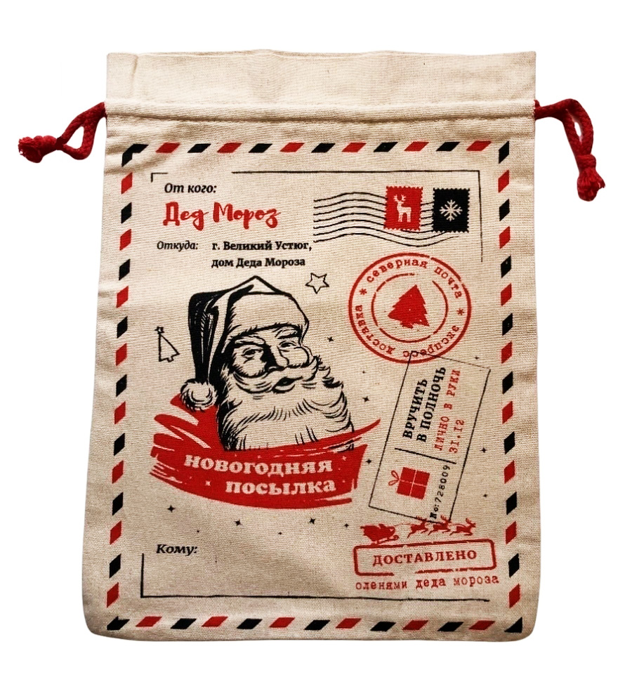 Мешок подарочный НГ текстиль Новогодняя посылка Деда Мороза 20*30см