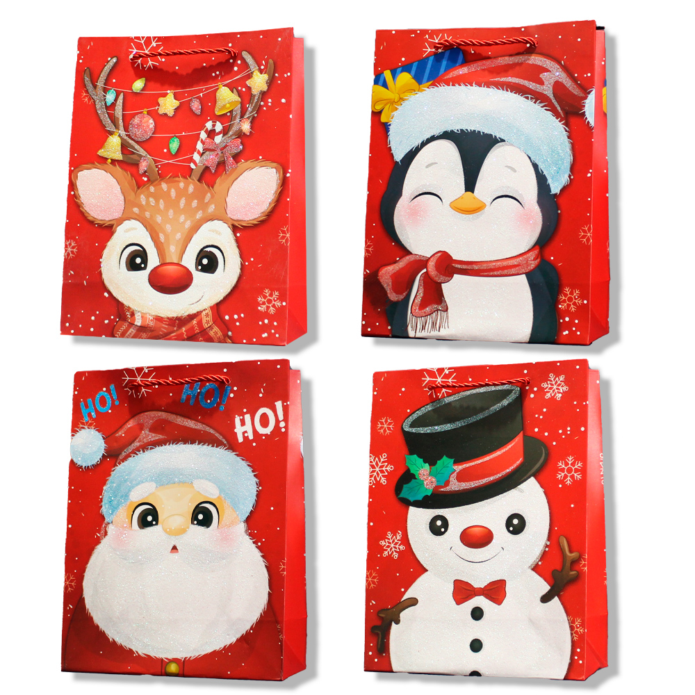 Пакет подарочный НГ 18*24*8,5см снеговик пингвин олень дед мороз