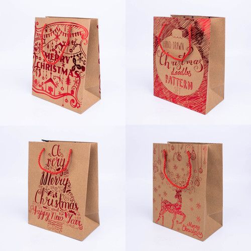 Пакет подарочный НГ 26*32*10см Крафт микс