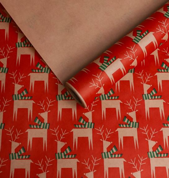 Бумага крафт 70см*10м 70г/м2 Олени с шарфиком красный/зеленый