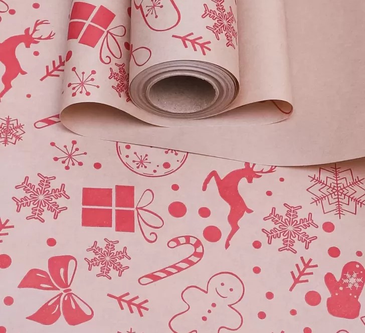 Бумага крафт 70см*10м 70г/м2 Рождество ягодный пунш