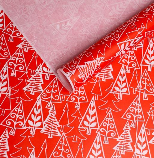 Бумага крафт белая 70см*10м 50г/м2 Елки красный