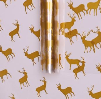 Пленка прозрачная 70см Северные олени золотой