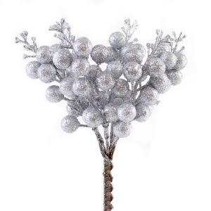 Набор веток с ягодами на вставках 6шт h19см серебряный