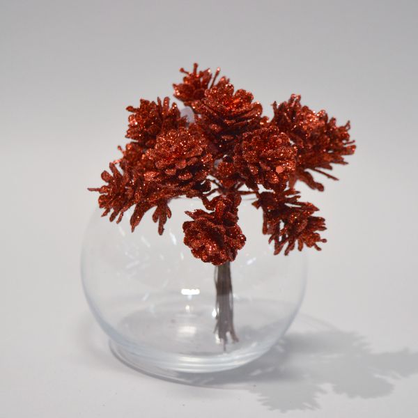 Шишки на проволоке в связке с глиттером 12шт 10см красный