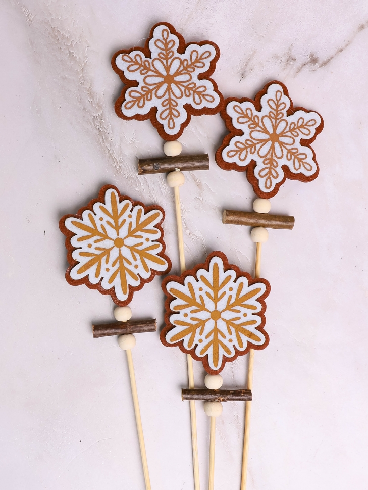 Вставка НГ деревянная фетр 31*6,3см Снежинка микс