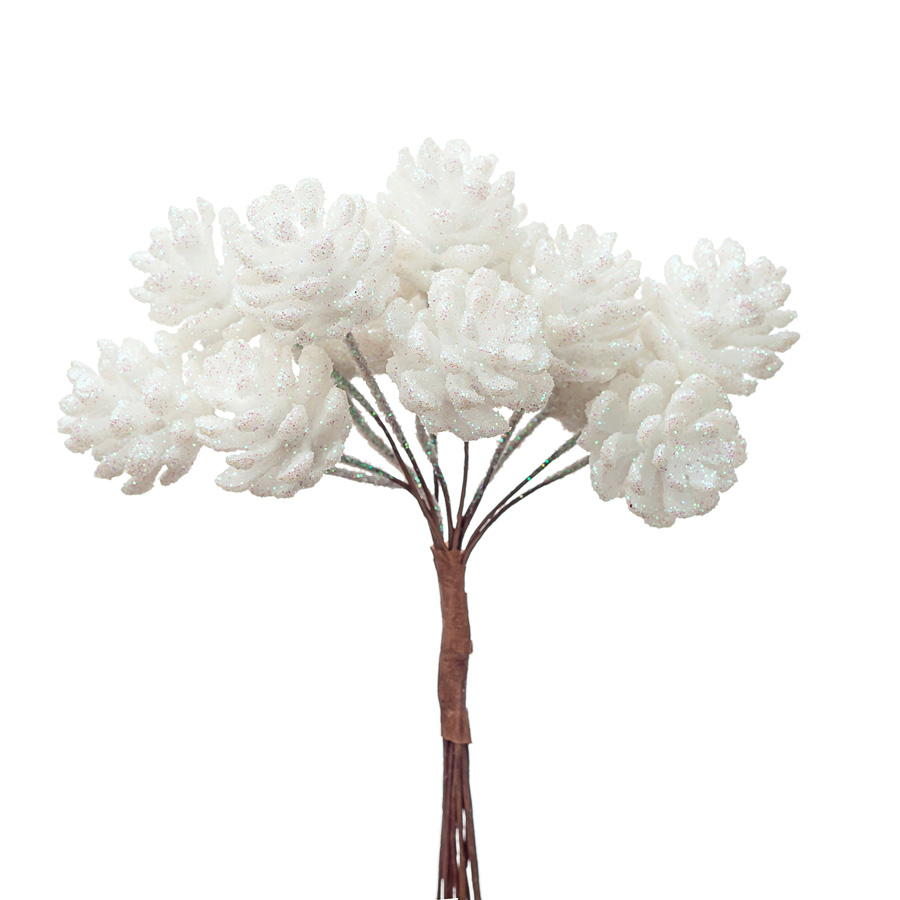 Вставка Шишки 12шт d2*h10см с глиттером белый
