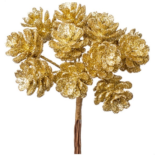 Вставка Шишки 12шт d2*h10см с глиттером золотой