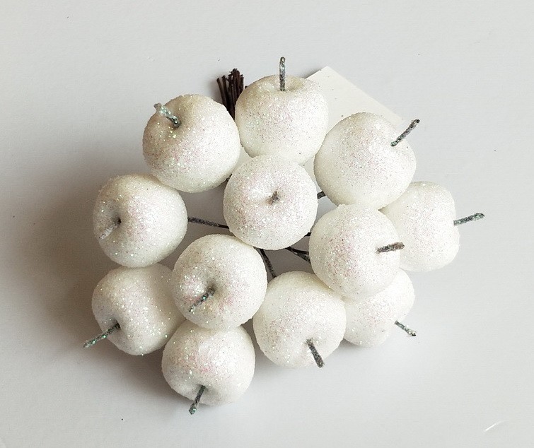 Вставка Яблоки 12шт d2,2*h10,5см с глиттером белый