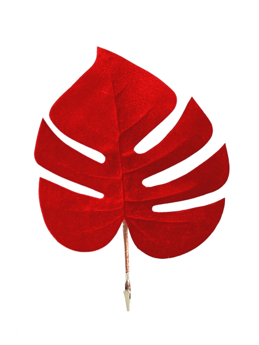 Ветка декоративная, монстера на клипсе, 32*20см красный