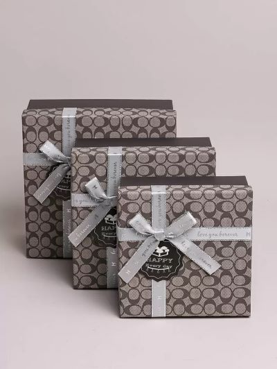 Коробка квадрат 19*19*9см монпасье с бантом мокко
