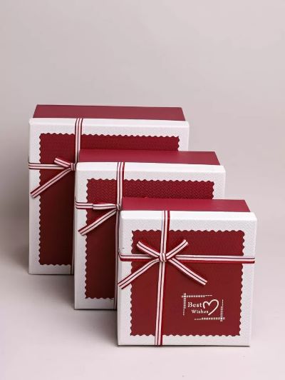 Коробка квадрат 23*23*14см кант белый вишневый